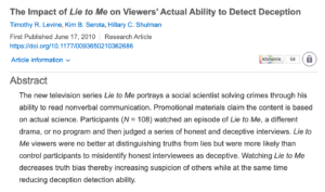 A special mention needs to be given to eye movements. Focusing on eye movements will seriously impair your ability to detect deceit. Modern day research (Vrij, Porter, DePaulo) have all concluded that the eyes themselves do not provide reliable information regarding deception. Examining the wrong cues to deception could have serious ramifications, such as labelling a truth teller as a liar because they habitually looked ‘up and right’ when in fact their statement was honest. Many lie catching guides enthusiastically claim that eye movements can reveal the difference between a fictitious event and a truthful memory; however these claims have again been widely disputed by eminent professors of psychology.