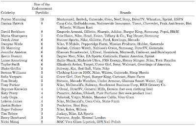 Figure Two: Celebrity endorsement portfolios (Keating & Rice, 2013)Celebrity endorsement ties into the influence of both availability heuristic and social norms, with multiple brands using celebrities to advertise their goods, as outlined in figure two (Keating & Rice, 2013). Research by Keating and Rice (2013) measured recall of products when they were presented with a celebrity (celebrity cue) or with no cue. When looking at their results (displayed in figure three), it is understandable why such a vast majority of brands invest in celebrity marketing techniques, with moderate levels of celebrity cues significantly increasing recall of the products.