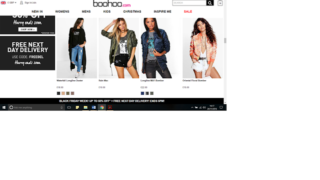 So, I went on my usual websites and then ended up on boohoo, and well there is nothing that gets my attention like free food, free parking and FREE NEXT DAY DELIVERY, especially when it is written right next to RED CAPITAL WRITING.